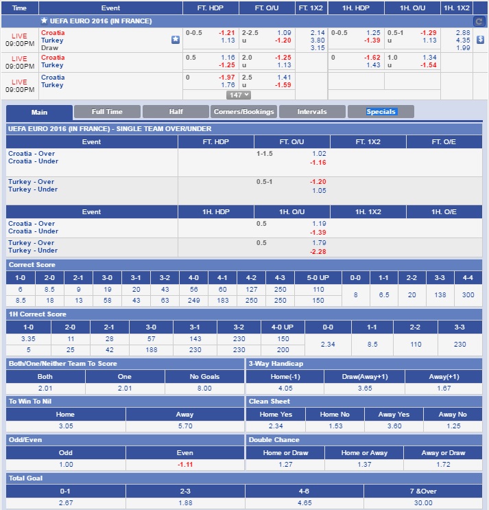 Contoh pertandingan antara Croatia vs Turkey.