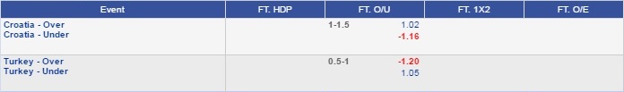 Di bagian Croatia, dibuka pasaran 1-1.5 (1 1/4)